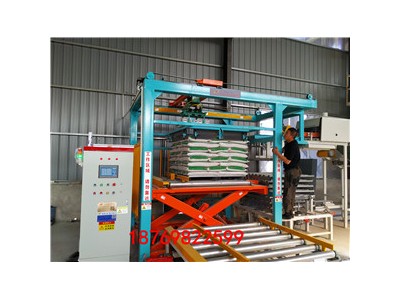 自动化码垛机又叫高位码垛机、智能码垛机,框架式码垛机,龙门码垛机等,整机由几百个零部件组成,适用于饲料厂,化肥厂,水泥厂,面粉厂等袋装企业,码垛能力在400-600包/小时,基本能满足中小企业单条生产线的物料码垛需求,自动化码垛机具有操作简单、性能稳定、维护方便,后期保养成本很低等优点,受到广大客户好评,市场占有率逐年递增。